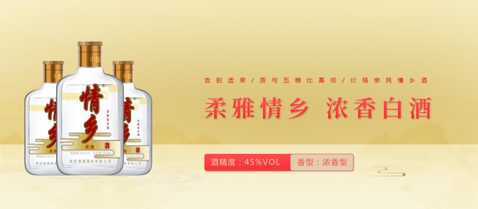 宜宾情湘酒业有限公司专业生产、销售"情乡"牌系列白酒的企业。公司致力于为消费者带来高性价比的正宗五粮浓香白酒产品。